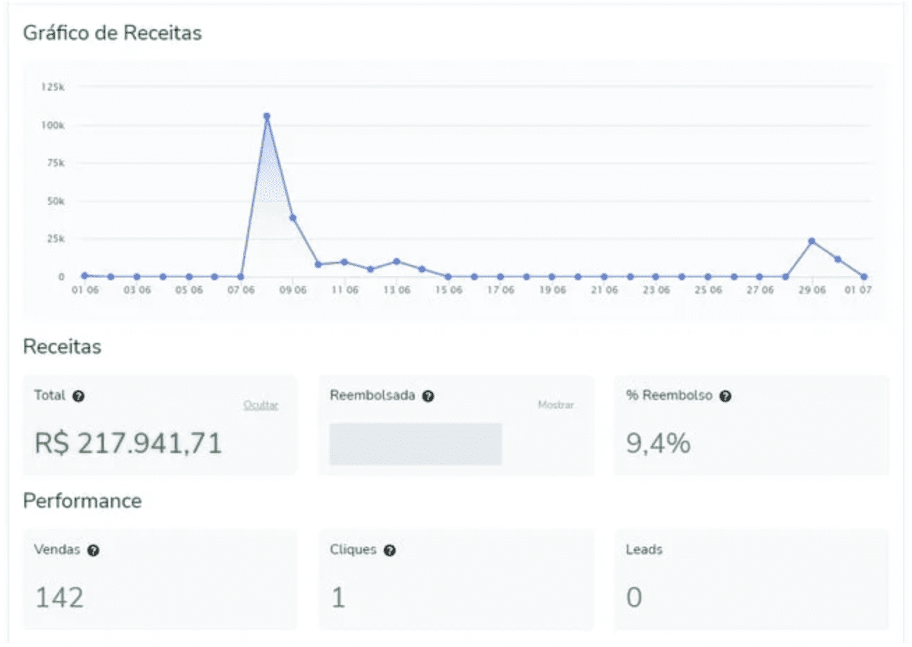 Ou então este outro lançamento do mercado financeiro que alcançou quase meio milhão (R$500 mil) de faturamento com pouco mais de R$100 mil investidos.