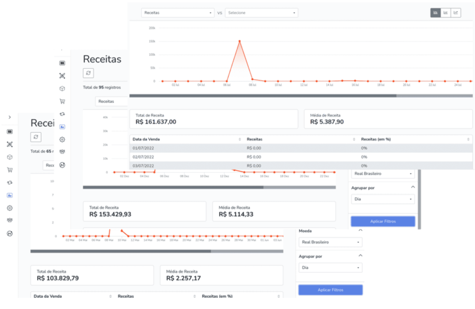 A sequência do print abaixo, são de lançamentos feitos através do envio de 3 a 4 e-mails.